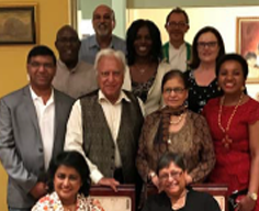 Her Excellency Dr Ameenah Gurib-Fakim, President of the Republic of Mauritius (seated left in the front row), visited Prof Salim and Quarraisha Abdool Karim (seated on the right) on 1st May. At the dinner on the occasion of her visit are: Second row (L-R): Nithia Madurai CEO Global Laboratories, Prof Jerry Coovadia (MatCH) and Dr Zubie Hamed, Ms Bongiwe Ntuli (CEO: Grindrod);Tom Kariuki (Interim Executive Director AAS) , Delivette Castor, Katherine Reardon, Back Row (L-R): Prof Salim Abdool Karim, Director CAPRISA and finally, Fine Dining Chef, Markus Banziger