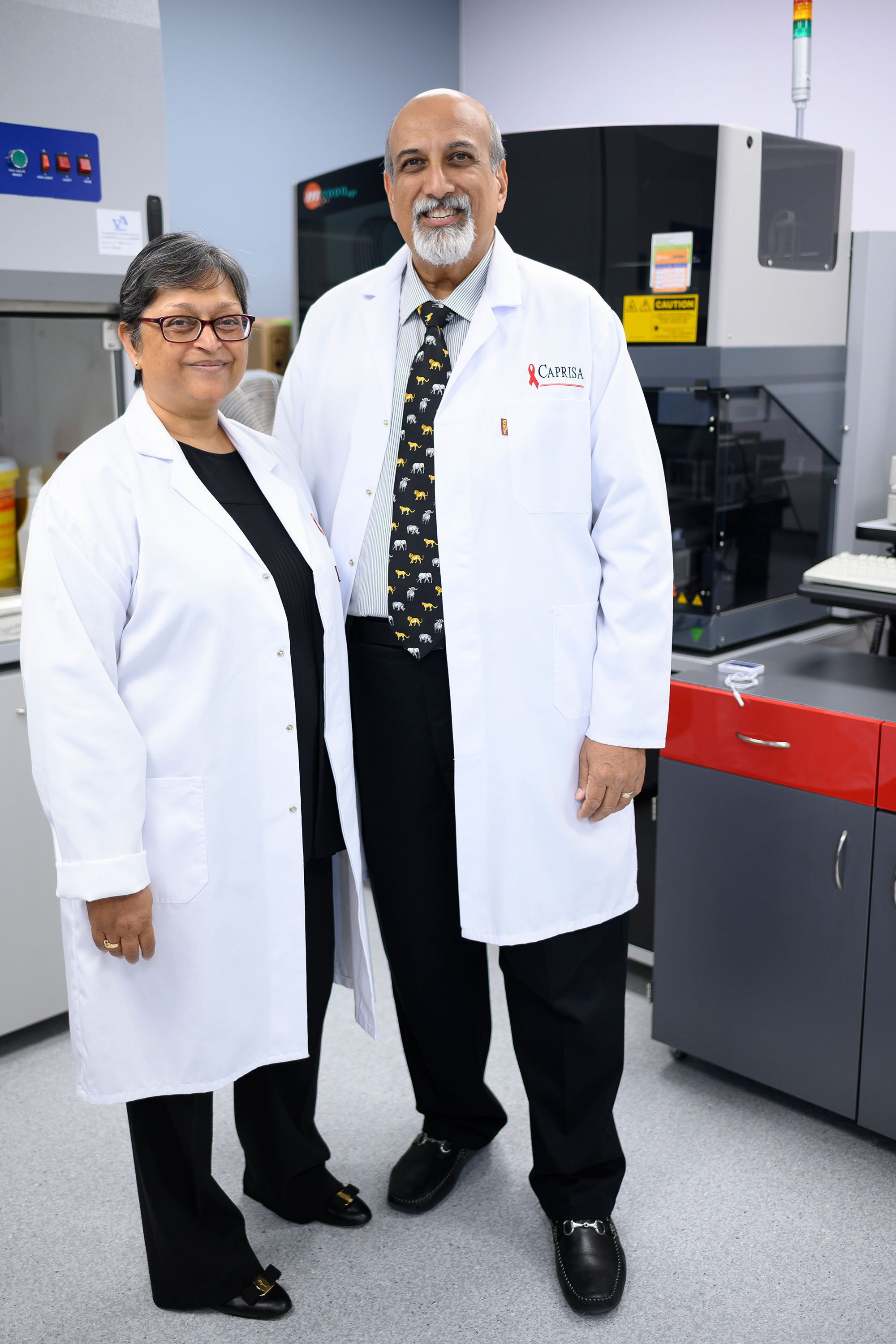 Photo: Professor Quarraisha Abdool Karim (L) and Prof Salim Abdool Karim (R) at the CAPRISA main laboratory in Durban, South Africa. They are two of the world’s leading AIDS researchers, with pioneering contributions in understanding the evolving HIV epidemic among young people, especially among young women while also advocating for the rights of people living with and affected by HIV.